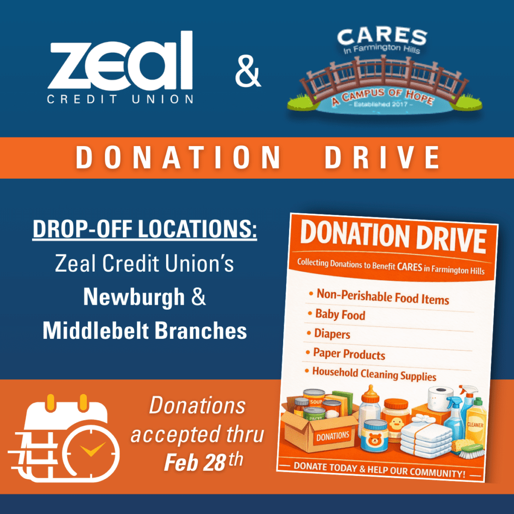 Zeal branches celebrated our members with cider and donuts, giveaways, and 2026 Michigan wall calendars! Thank you again to every Zeal member – you make all of this possible and we are proud to be your local credit union for more than 70 years.